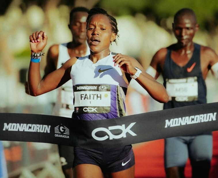 Triple Olympic champion Faith Kipyegon made a remarkable shift to road with a commanding performance in the women’s 10km at the Monaco Run on Sunday.
