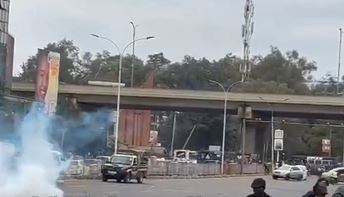 Police officers from Central Police Station, Nairobi were compelled to discharge tear gas to separate University of Nairobi students who had taken to the streets to protest against the non-release of their April examination results.