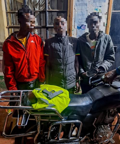 Acting on this information, police intensified patrols and mounted a well-planned ambush along a route frequently used by the suspects. Their efforts paid off when a motorcycle carrying three male suspects, aged between 22 and 24, was spotted approaching from the Juja direction.