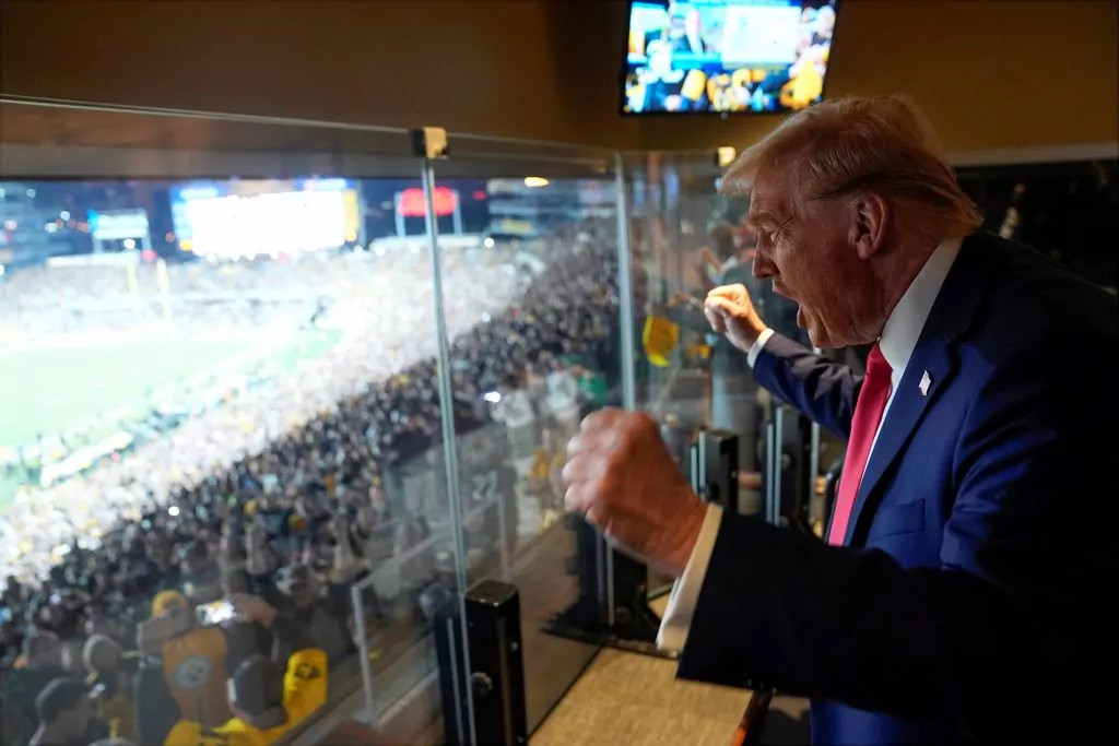 President Trump attending the Pittsburgh Steelers Sunday night football game against the New York Jets in 2024.